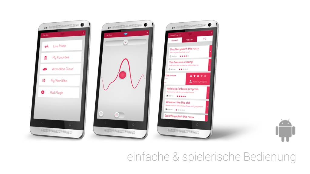 Während das Sextoy lädt, kann man schon mal das Smartphone zücken und den QR-Code auf dem beiliegenden Zettel in der Verpackung scannen. Schon poppt der Google-Playstore auf, mit der zugehörigen App für den Vibrator. Diese muss dann heruntergeladen werden. Als ich die App geöffnet habe, fand ich sie sehr schön schlicht gehalten. Ich konnte meine E-Mail-Adresse angeben und musste mir einen Nicknamen ausdenken. Eigentlich erklärt sich die App von allein. Wem das nicht genügt, für den gibt es noch eine ausführliche Anleitung als PDF-Datei zum Download. So wie ich es verstanden habe, gibt es wohl einen Modus ohne Smartphone, doch leider habe ich diesen nicht aktivieren können. (Anmerkung der Redaktion: Dazu dient der herzförmige Button auf der Unterseite des „WorldVibe“, mit diesem steuert man vier frei belegbare Speicherplätze.) Vielleicht habe ich mich auch einfach etwas zu ungeschickt angestellt.